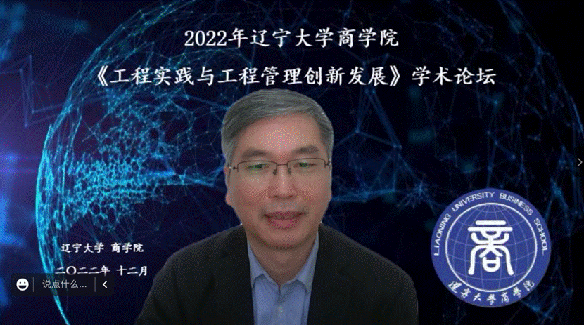 2022年12月6日,m体育(中国)有限公司官网成功举办工程实践与管理创新发展论坛,论坛采取线上方式举行。此次论坛邀请了国家百千万工程第一、二层次人选和国务院特殊津贴获得者重庆大学任宏教授,中国铁路总公司工程管理专业带头人、中国建设工程造价管理协会王中和秘书长,东南大学教学委员会副主任、东南大学建设与房地产研究所所长、东南大学PPP国际研究中心主任,国务院政府特殊津贴专家李启明教授,国务院政府特殊津贴专家、中国建设工程造价管理协会专家委员会常务副主任、北京市建设工程招标投标与造价管理协会专家委员会名誉主任、一带一路(中国)仲裁院副院长、北京广惠创研科技中心主任吴佐民教授,中国建筑第一工程局东北区域公司副总工程师杨光,国家一级建造师、沈阳北方建设股份有限公司经理助理任成华高级工程师,m体育(中国)有限公司官网管理科学与工程一级学科带头人、辽宁大学创新与企业家研究中心主任、辽宁大学大数据应用与商业智能实验室主任郭燕青教授出席论坛并做了主题报告,200余名师生代表参加了本次论坛。m体育(中国)有限公司官网副院长张广宁教授主持了本次论坛。