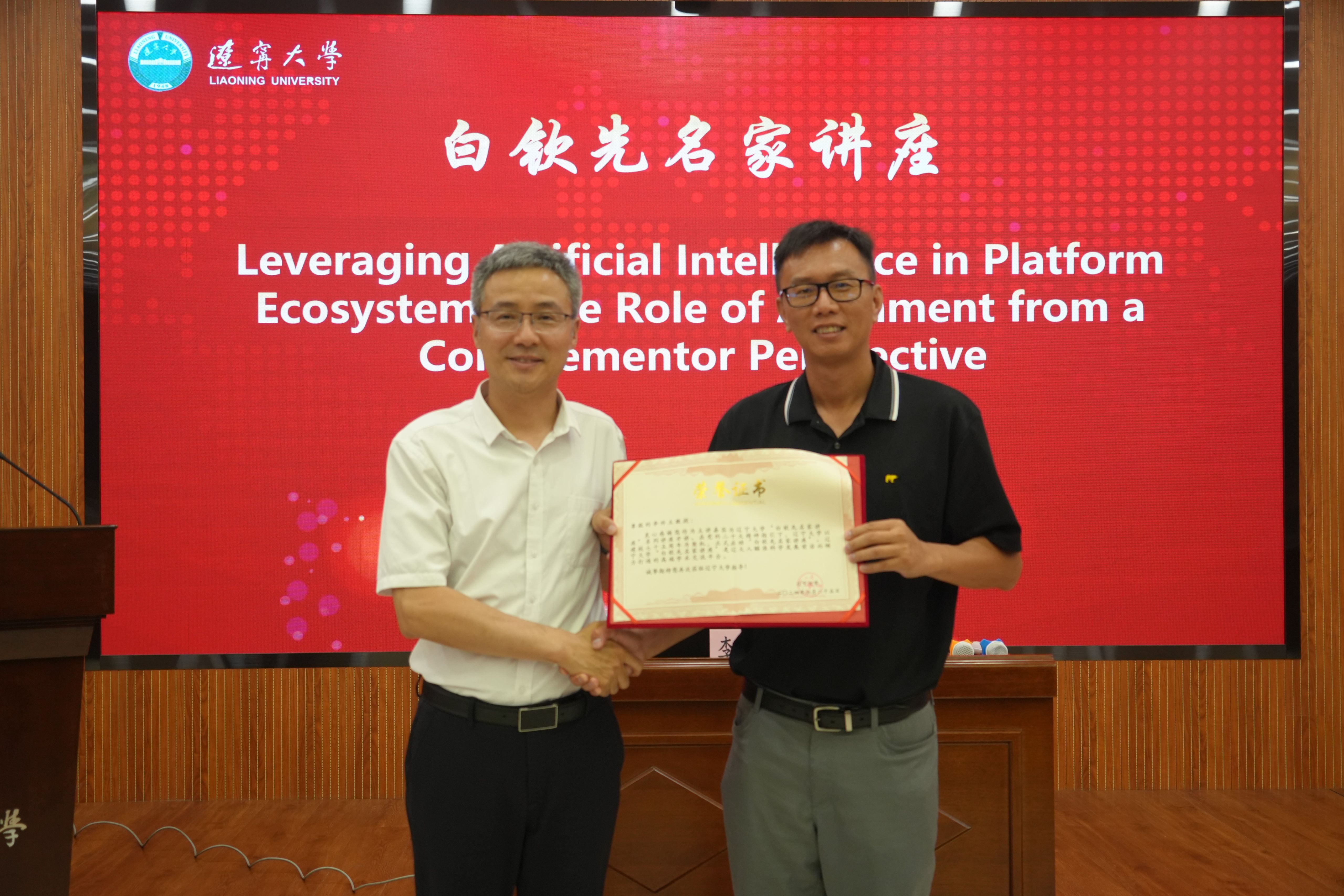 6月25日下午,由辽宁大学社会科学研究院主办、m体育(中国)有限公司官网承办的辽宁大学“白钦先名家讲座”(第六讲)在辽宁大学蒲河校区校部办公楼317会议室举行。本次讲座主讲嘉宾是美国南卡罗来纳大学摩尔商学院国际商务系李卅立教授。辽宁大学党委常委、副校长霍春辉教授出席讲座并介绍主讲嘉宾。讲座由m体育(中国)有限公司官网副院长韩亮亮教授主持。