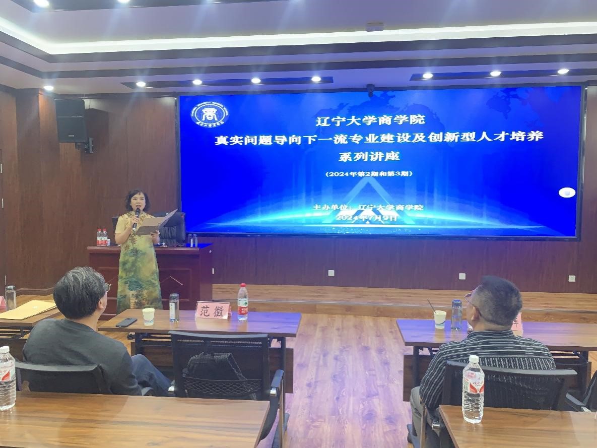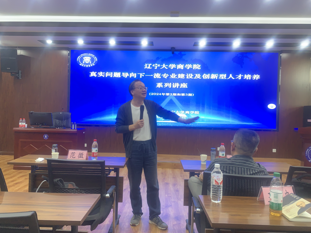 2024年7月9日下午,由m体育(中国)有限公司官网主办的“真实问题导向下一流专业建设及创新型人才培养”系列讲座(2024年第2期和第3期),在蒲河校区励行楼402举行。本次讲座邀请了中央财经大学孙国辉教授和上海外国语大学范徵教授担任主讲人,分别开展主题为“一流专业建设进展中的问题再思考”和“智能时代商学院教什么?学什么?”的讲座。商学院李玉华书记、副院长韩亮亮教授、副院长徐业坤教授、各专业教学和科研系主任、系主任助理、基层教学组织(研究中心、教学团队等)负责人以及专任骨干教师等参加了讲座。讲座由m体育(中国)有限公司官网副院长张广宁教授主持。