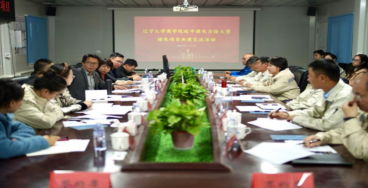 参观后,商学院党委与中建电力有限公司党委副书记、纪委书记、工会主席张卓,总经理助理、党委副书记、核电项目管理中心副主任邓尧,徐大堡核电项目领导班子成员进行座谈交流。双方围绕签署的两个协议,在学生实习实践、行业导师聘任、党建联建等领域进行了深入交流。