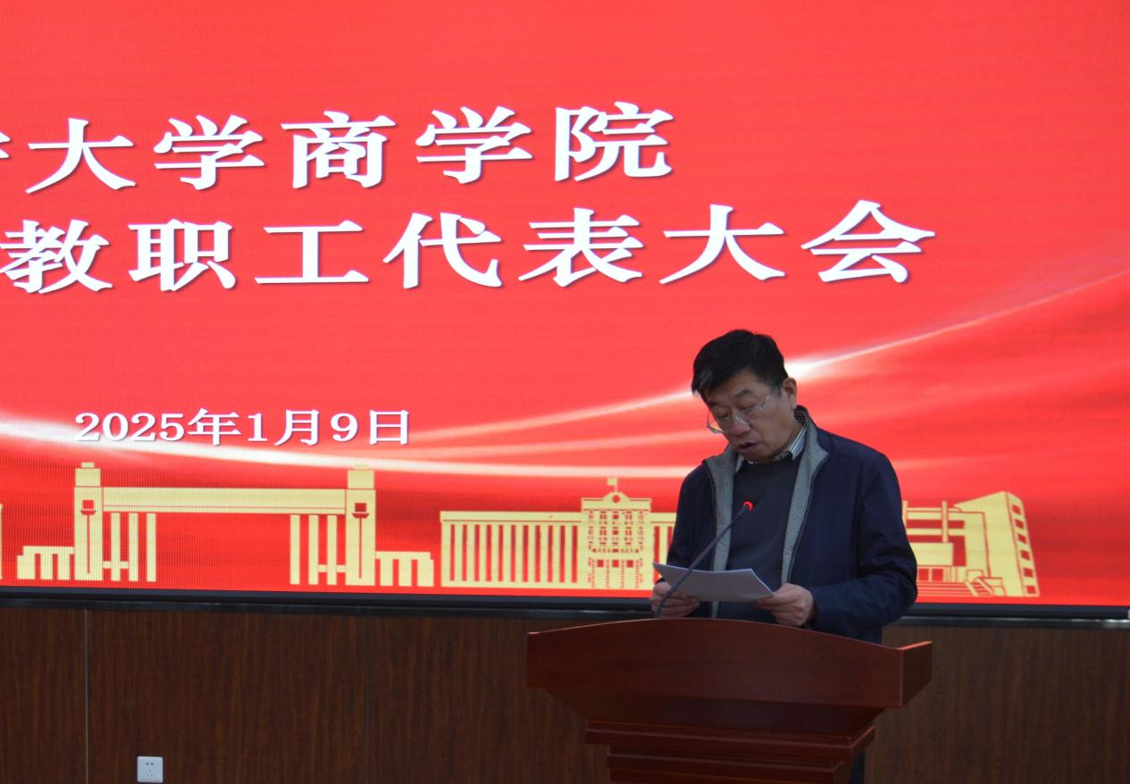 副院长张广宁作《商学院2024年度学院财务工作报告》,副院长徐业坤就提案征集与处理情况进行了说明,工会主席姚树中作《商学院2024年度工会工作报告》《商学院2024年度工会财务工作报告》。