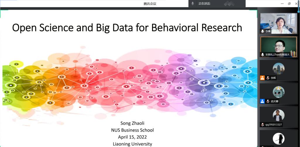 2022年4月15日下午,应m体育(中国)有限公司官网邀请,新加坡国立大学商学院组织管理系副教授宋照礼博士参加“辽商论坛‘海外学者’系列讲座”活动。宋博士带来的讲座题目为“开放科学与大数据对行为科学研究的影响”(Open Science And Big Data For Behavioral Research)。讲座采用腾讯会议方式,商学院部分教师和研究生参加了本次讲座,讲座由人力资源系主任李博教授主持。