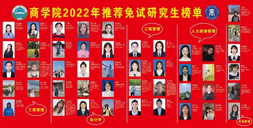 本科 商学院 首页 人才培养 本科 新闻动态 通知公告 专业设置 招生信息 联系方式 新闻动态 商学院圆满完成2023届46名推免生的推免工作2023-03-17 商学院本科19门课程喜获辽宁省一流课程2022-11-29 成功举办第二届真实问题导向的一流专业建设与教学改革论坛2022-11-17 主办工程实践与管理创新发展论坛2022-11-15 商学院在本科教学工作中喜获佳绩2022-09-09 MORE通知公告 2023-03-17“学堂在线一体化平台”教学应用培训会 2023-03-13关于举办辽宁大学第三届大学生金相技能大赛暨2023年辽宁省、全国大学生金相技能大赛选拔赛的通知 2023-03-13关于举办2023年第十三届全国大学生电子商务“创新、创意及创业”挑战赛的校赛竞赛通知 2023-03-07关于继续选拔优秀学生2023年暑假赴剑桥大学和斯坦福大学短期学习的通知 2023-03-06关于2022—2023学年春季学期循环开设课程的通知 MORE专业设置 2023-01-30工商管理专业 2023-01-30市场营销专业 2023-01-30人力资源管理专业 2023-01-30会计学专业 2023-01-30工程管理专业